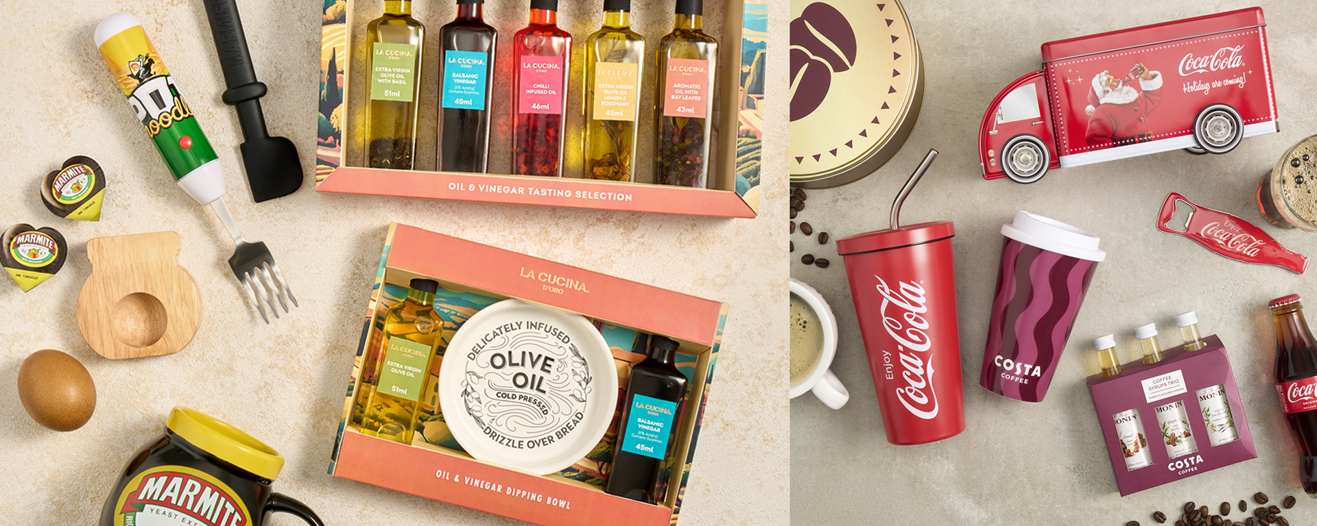 Our collections range from food and drink gifts to home and lifestyle products, including much-loved branded collaborations with the UK’s favourite household names such as Costa Coffee, Marmite, Netflix and Universal Pictures, alongside our own range of on-trend own label lines.
